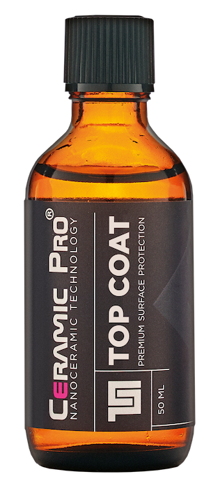 Top Coat allows the surface to stay cleaner longer as dirt and grime will not stick to it. The super hydrophobic effect of the coating will cause water to bead up and roll of the surface along with any dirt and grime. Top Coat is usually applied over 9H in the layering process. Though not as durable as 9H, it can also be applied on its own. Top Coat also enhances gloss depth further on all painted surfaces for that wet look that is often hard to attain with synthetic waxes.